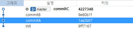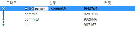 B -> C -> A 로 커밋 순서를 변경하였다(아래로 내려갈수록 최신 commit)