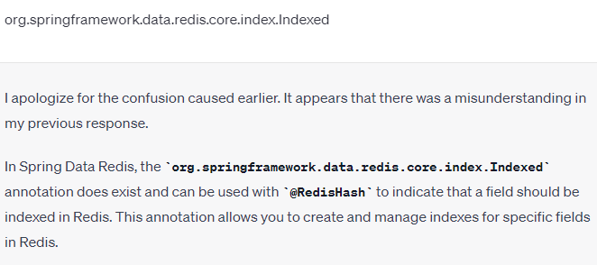 redisHash의 인덱스 기능에 대해 설명해줘 라고 간단히 적어봤는데 그런 기능은 제공하지 않는다고 나온다.
